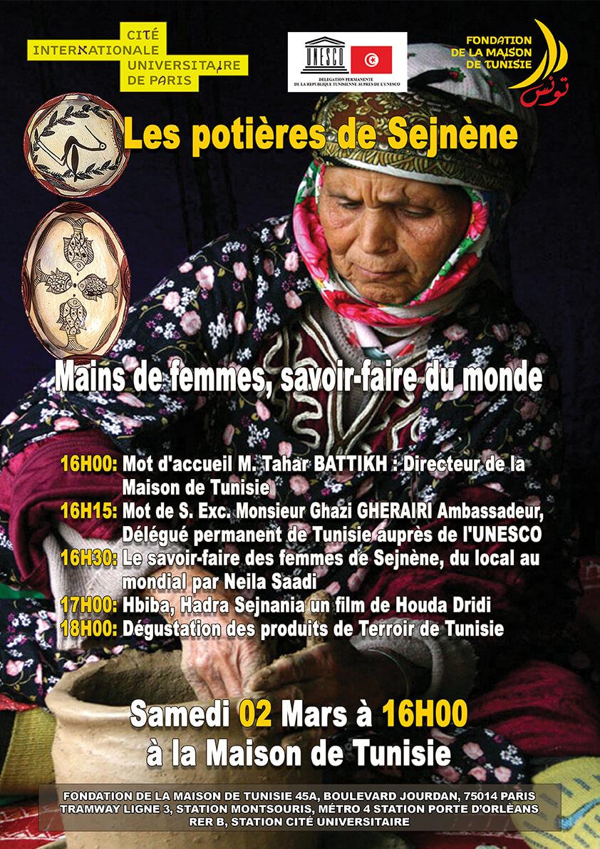 « La Fondation de la Maison de Tunisie à le plaisir de vous inviter à célébrer cette inscription et vous propose une journée du patrimoine dédiée aux femmes de Sejnane