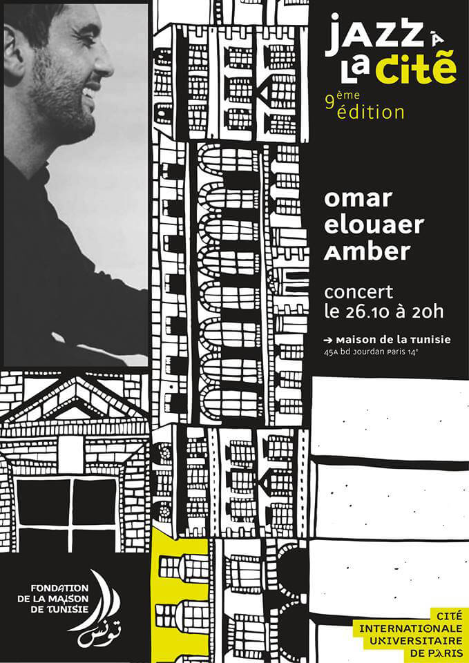 La Fondation de la Maison de Tunisie, et dans le cadre de la 9 eme Edition du festival » jazz à la cité #9, » a le plaisir de vous inviter au concert Amber de Omar Elouaer QUARTET.