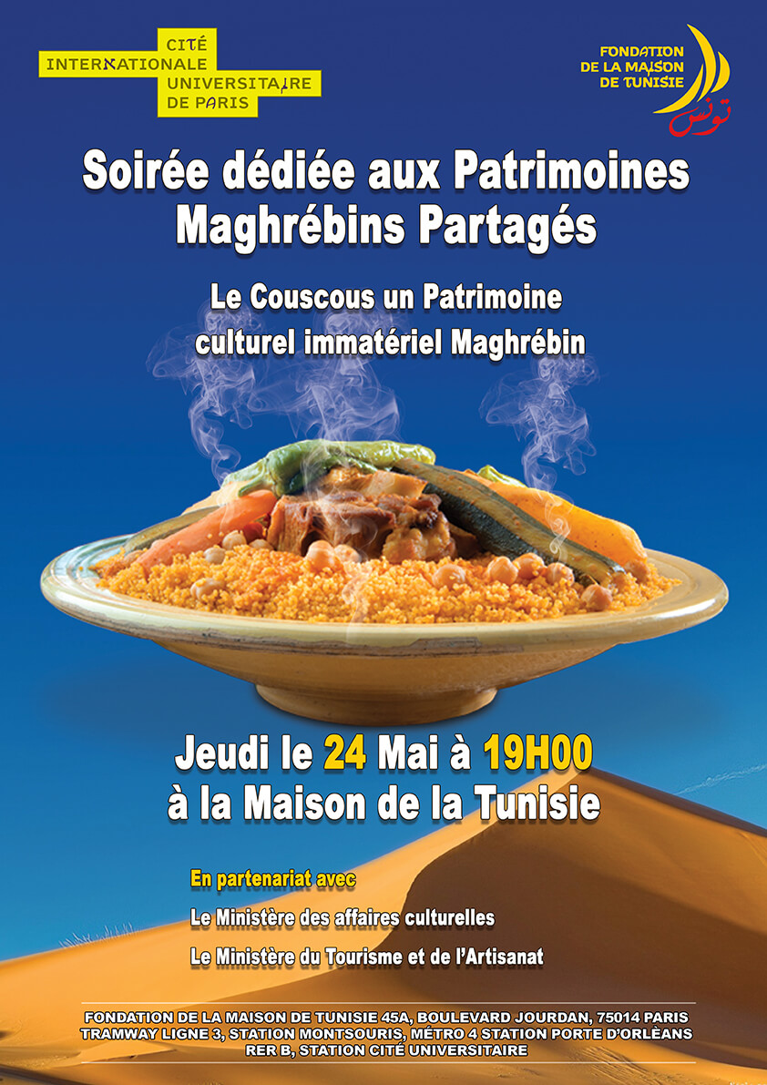 La fondation de la maison de Tunisie a le plaisir de vous inviter à une soirée ramadanesque dédiée aux patrimoines Maghrébins partagés : le couscous est un patrimoine culturel immatériel maghrébin