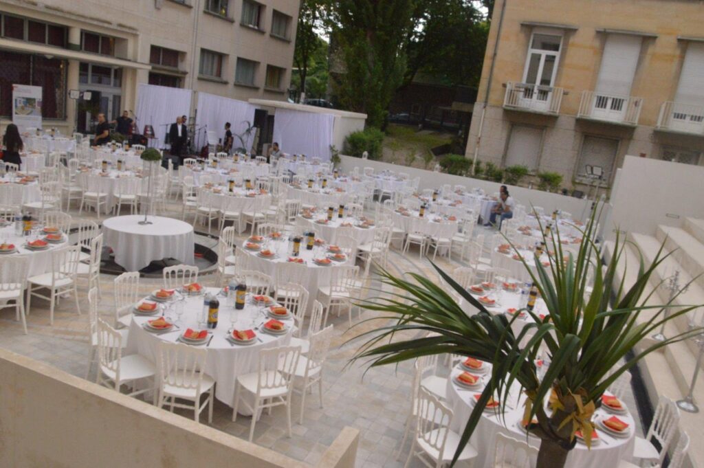 La maison est dotée d’une terrasse qui peut accueillir jusqu’à 600 personnes (300 personnes pour un repas assis). Idéale pour des manifestations en plein air.