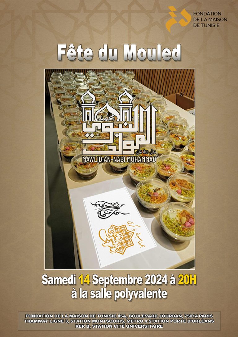 Chers amis,La fondation de Maison de Tunisie a l’immense plaisir de vous inviter à Fête du Mouled le Samedi 14