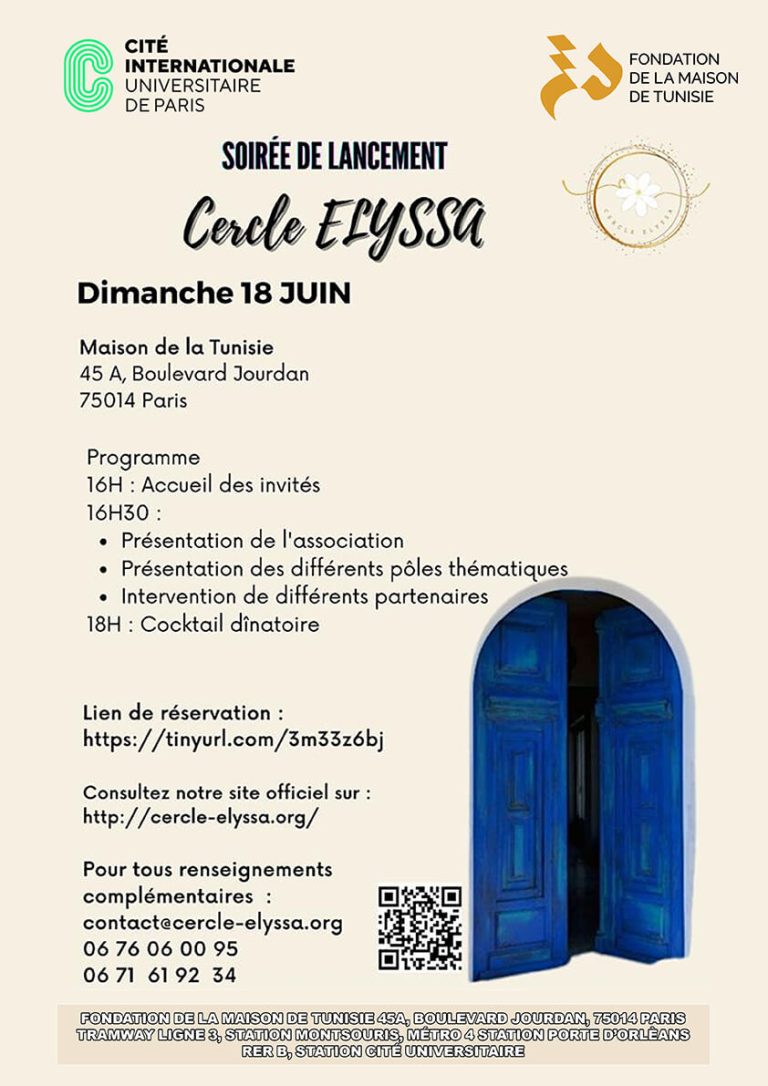 Nous sommes heureux de vous convier à la soirée de lancement du Cercle Elyssa qui se tiendra le : Dans