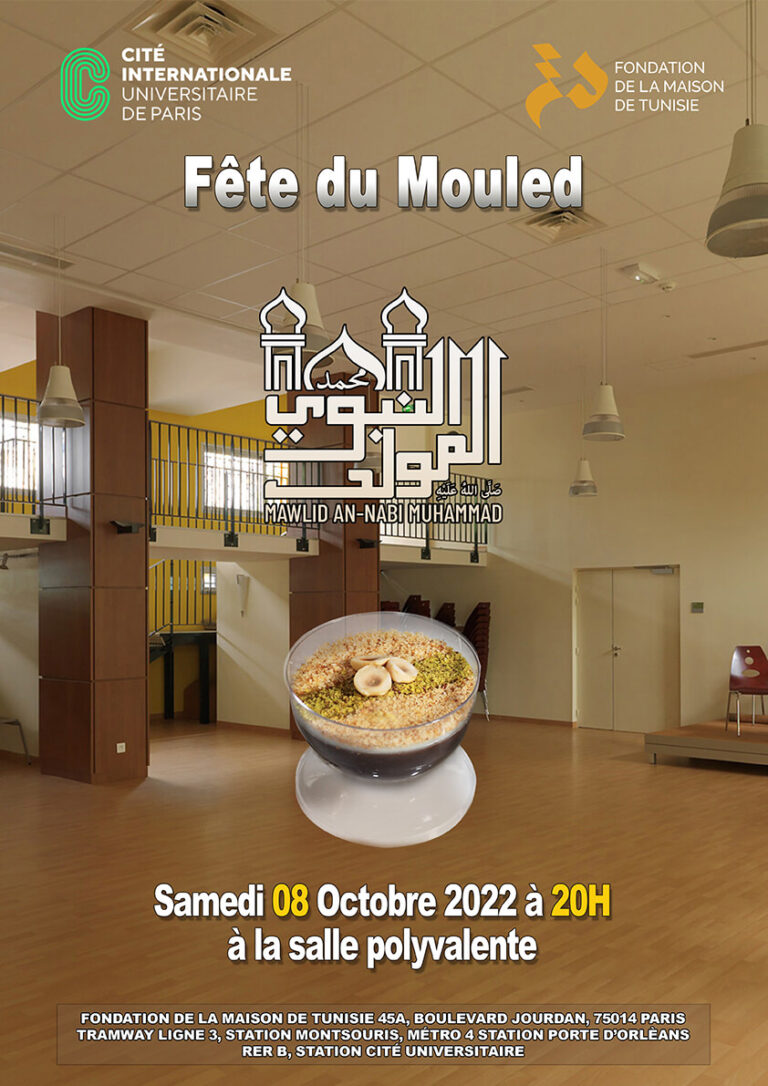Chers amis, La fondation de Maison de Tunisie a l’immense plaisir de vous inviter à Fête du Mouled le Samedi