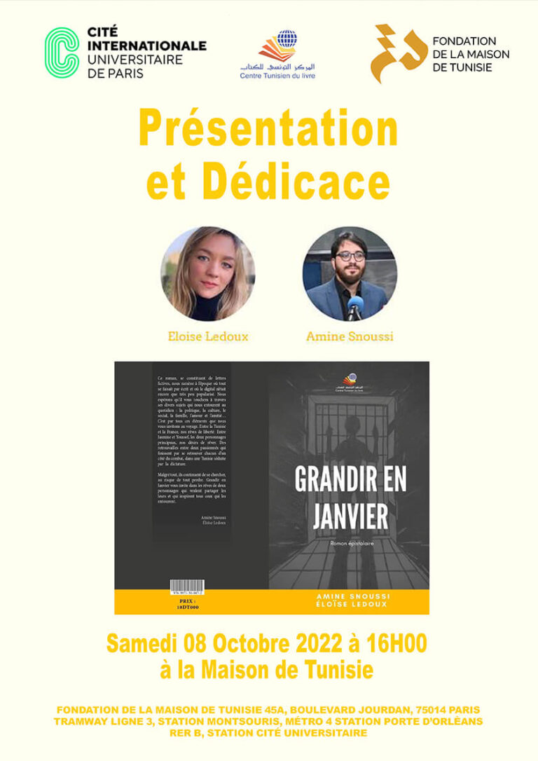 La Fondation de la Maison de Tunisie a le plaisir de vous inviter à la présentation et dédicace du Roman