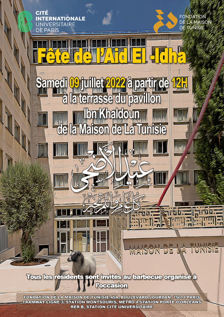 Chers amis, La fondation de Maison de Tunisie a l’immense plaisir de vous inviter à Fête de l’Aid El-Adha le