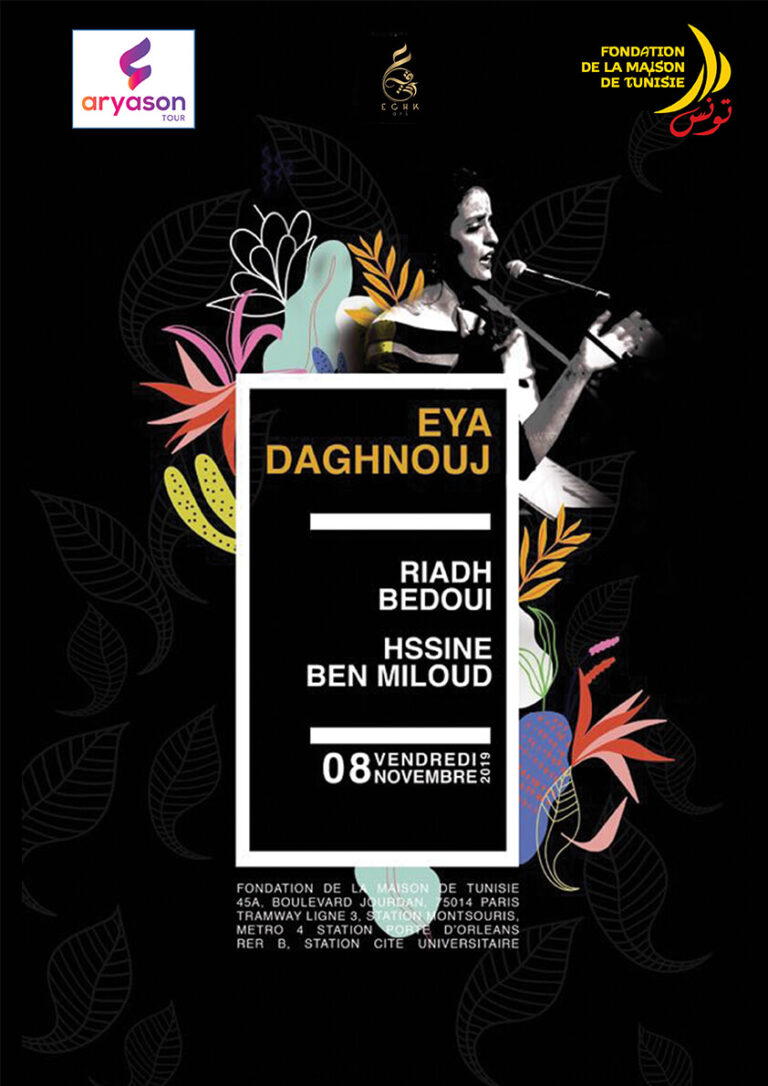 La Fondation de la Maison de Tunisie a le plaisir de vous inviter au concert de l’artiste tunisienne Eya Daghnouj,