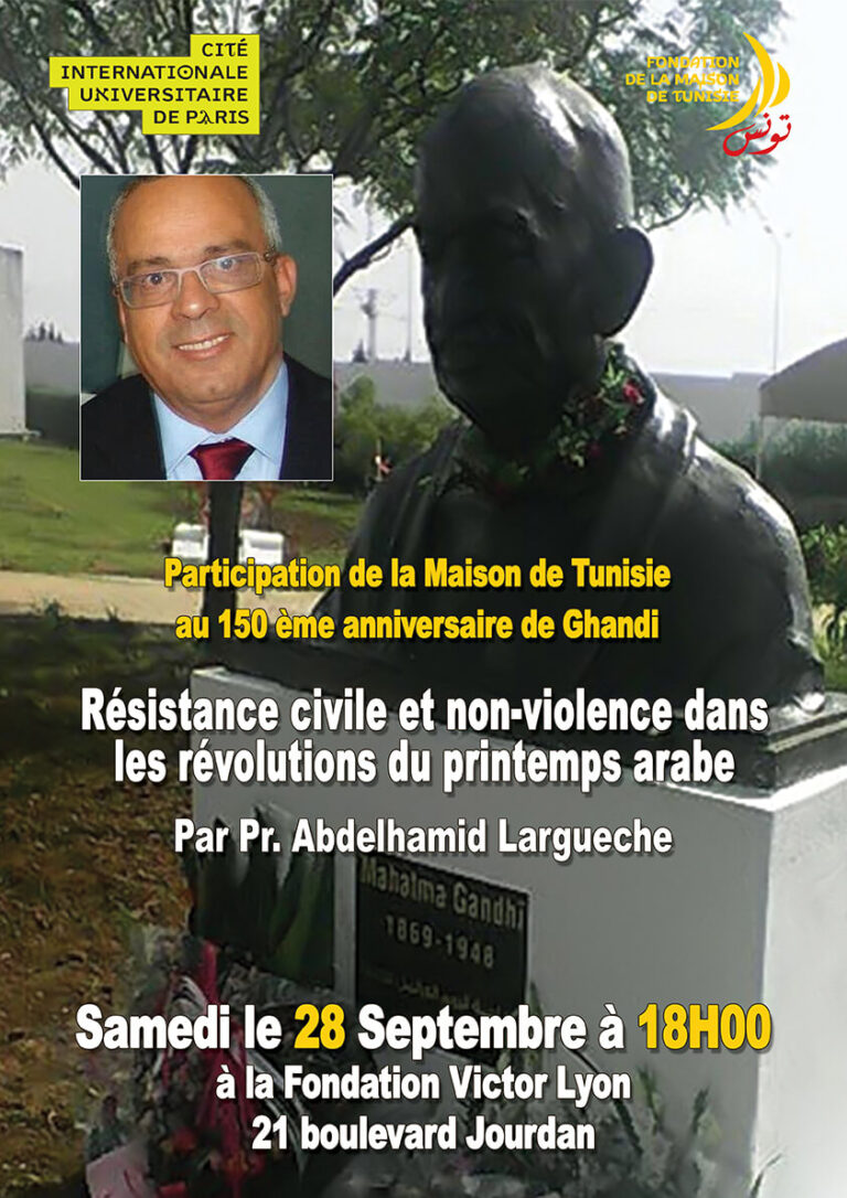En partenariat avec la Maison de l’Inde et dans le cadre du 150 éme anniversaire de Ghandi. Professeur Abdelhamid Largueche