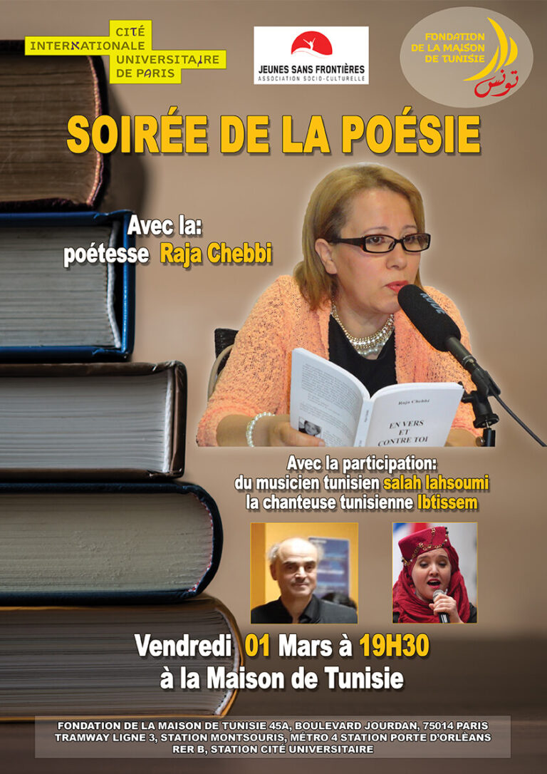 La Fondation de la maison de Tunisie et en Partenariat avec l’association jeunes sans Frontières organise une soirée de poésie