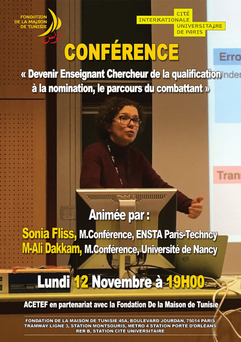 En partenariat avec l’ ACETEF, la FONDATION DE LA MAISON DE TUNISIE a le plaisir de vous inviter lundi 12/11/2018