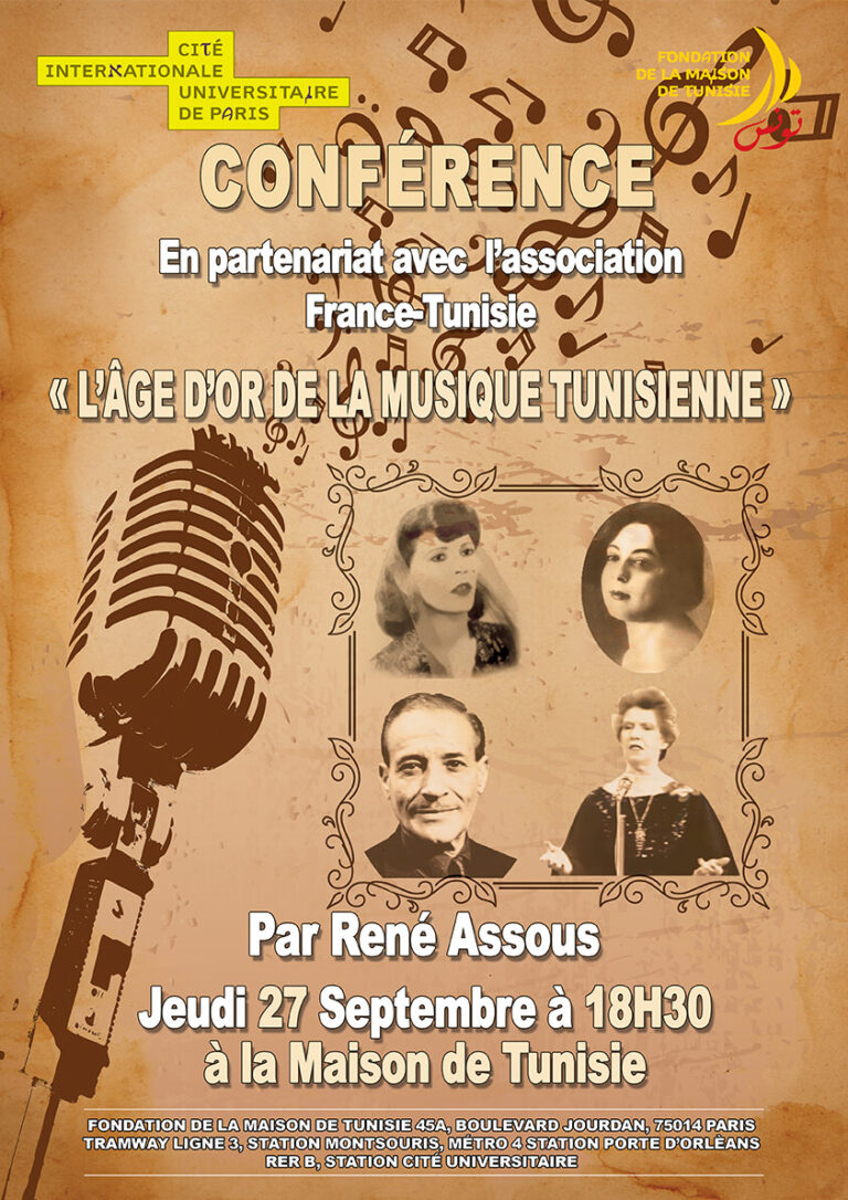 En partenariat avec l’association France-Tunisie La Fondation de la maison de Tunisie a le plaisir de vous inviter a une