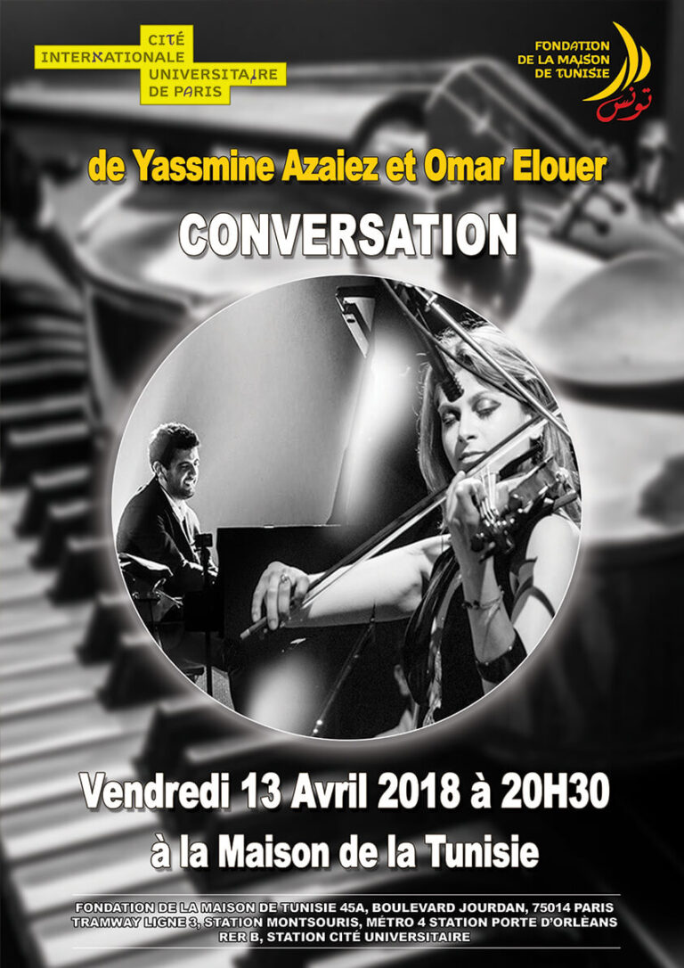 La maison de Tunisie a le plaisir de vous inviter Le 13 Avril à CONVERSATION concert en duo de Yassmine