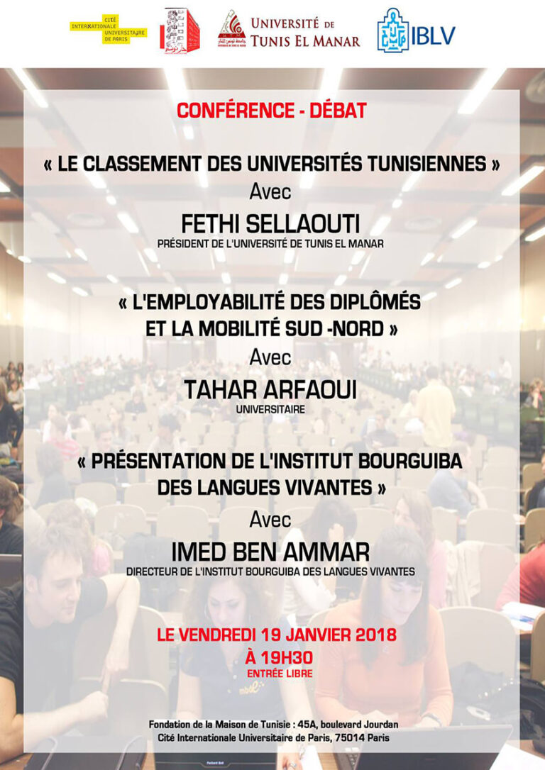 La maison de Tunisie a le plaisir de vous proposer une Conférence-débat le vendredi 19 janvier 2018 à 19H30 avec