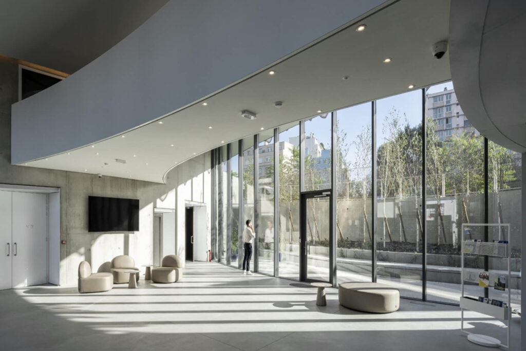 D’un point de vue fonctionnel, la façade protège efficacement les résidents du Pavillon contre l’ensoleillement et donne une véritable intimité à tous les espaces, y compris la nuit le long du périphérique.