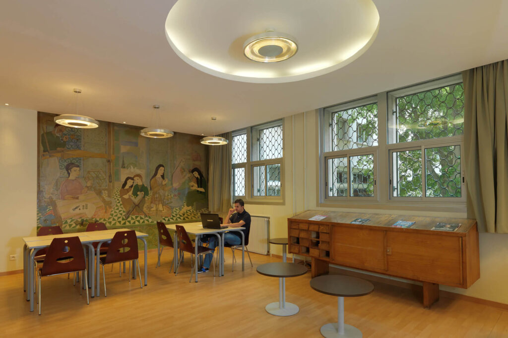 La Maison de Tunisie a été construite en 1953, pendant la deuxième grande phase de développement de la Cité internationale. Son architecture, œuvre de Jean SEBAG, est typique des années 1950. A son ouverture, elle se distinguait par la qualité de son équipement intérieur et de son mobilier, signés Charlotte PERRIAND, Jean PROUVE, Alain RICHARD, Marcel GASCOIN et Pierre FAUCHEUX. Le peintre Sonia DELAUNAY avait même participé à la création des rideaux du grand salon. Elle a été entièrement rénovée en 2011, avec une mise aux normes et une augmentation de sa capacité d’accueil. Elle comporte aujourd’hui 182 chambres et 17 studios. Sa capacité d’accueil a doublé avec l’ouverture du Pavillon Habib Bourguiba.
